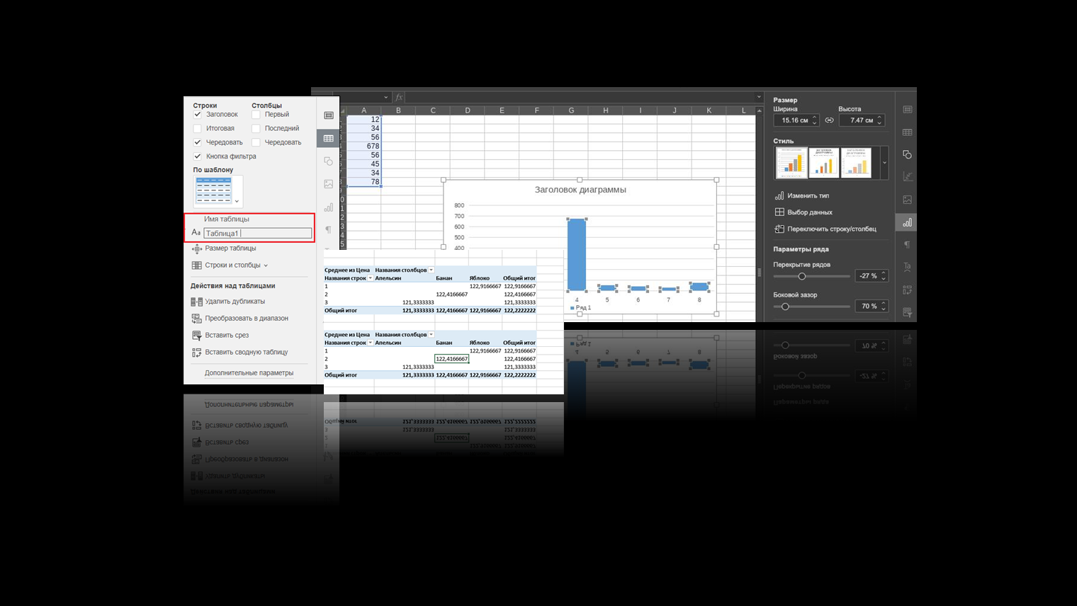 Также появилась возможность редактирования названия «Умной таблицы» в правом боковом меню (раздел «Параметры таблицы»).