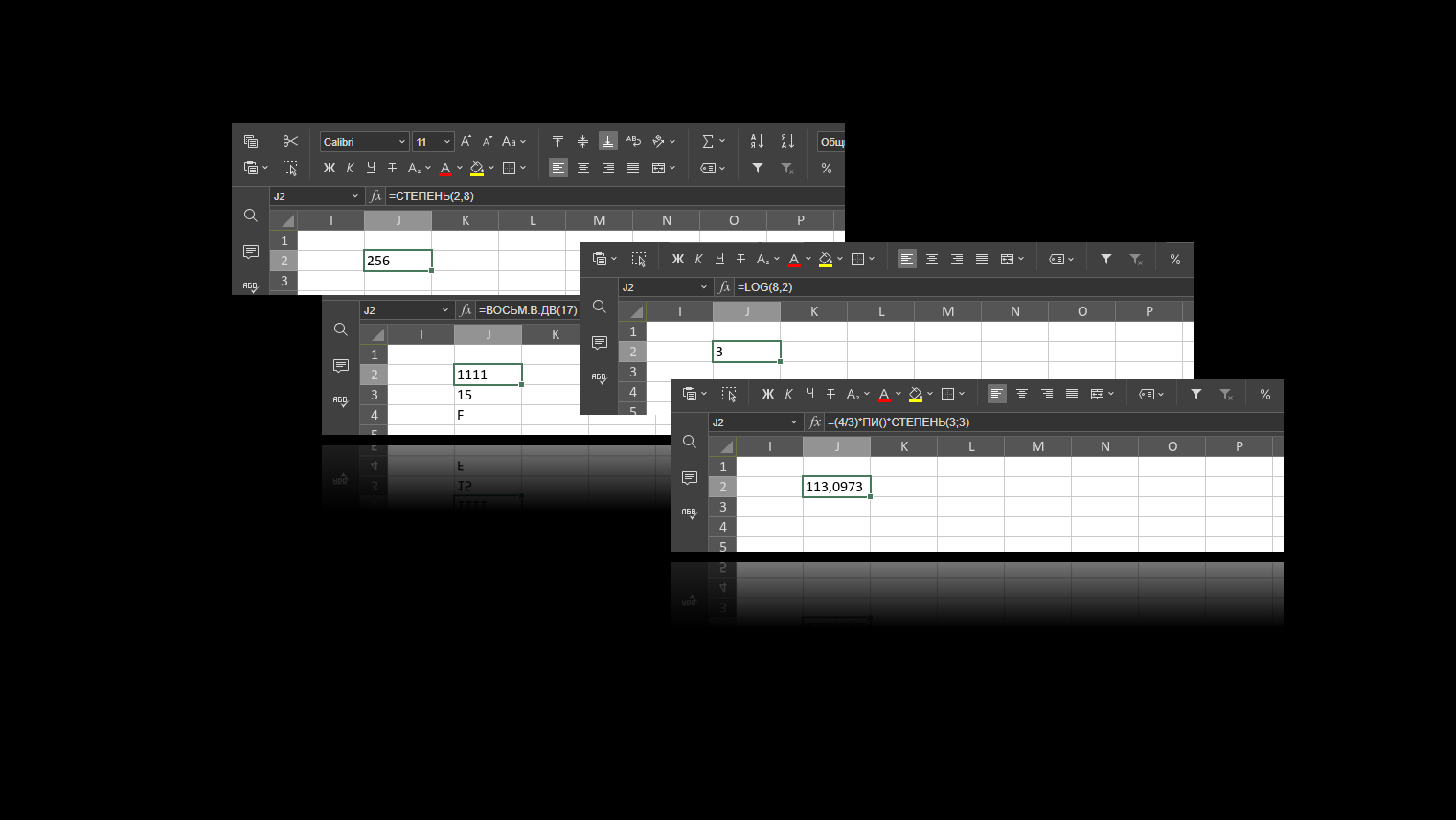 А еще не забывайте, что подлинная сила функций в комбинации и СТЕПЕНЬ вместе с ПИ могут оказаться в одной строке, например, при расчете объёма сферы радиусом 3 м: