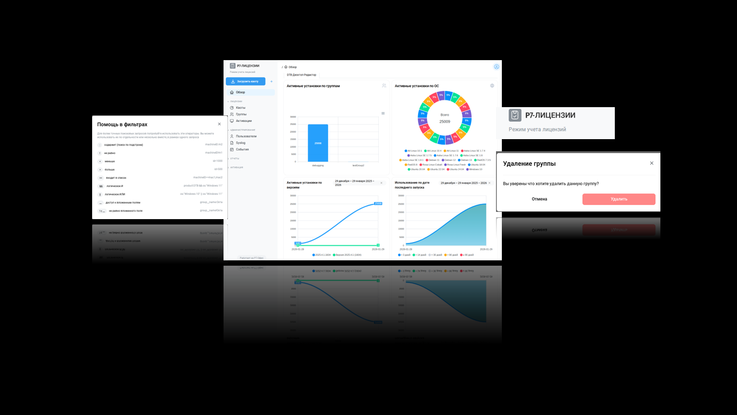 Для удобства работы реализована проверка на наличие активных активаций и привязанных квот перед удалением группы.
